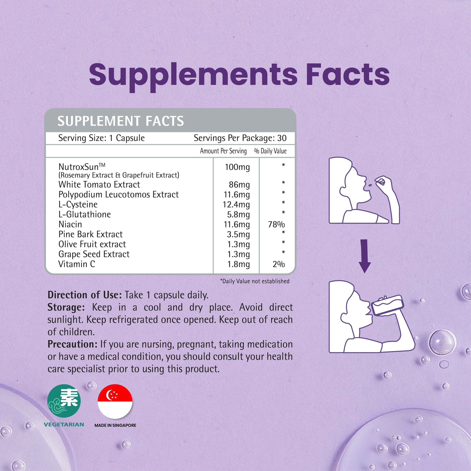 Formulated with NutroxSun™: Our exclusive blend of rosemary and grapefruit extracts, NutroxSun™, provides superior skin protection. This innovative ingredient combination not only helps with skin whitening but also offers robust sun protection, ensuring your skin stays healthy and radiant