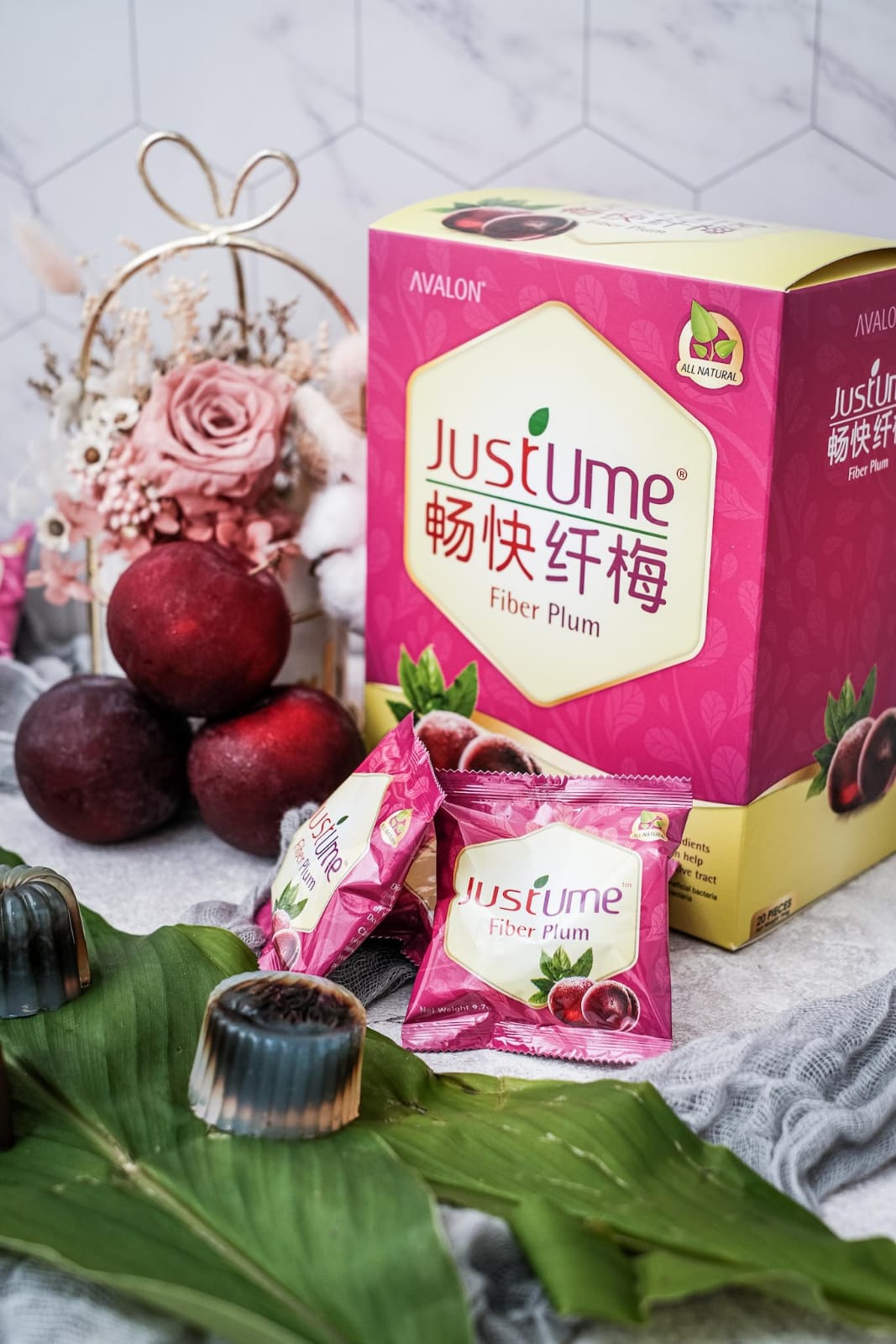 JustUme® Fiber Plum contains the Japanese Umeboshi Plums, 2 Probiotic strains, and a special blend of herbs to help cleanse our digestive tract. It helps to reduce problems that are commonly associated with acidic pH levels, such as constipation, excessive bloating and gas, skin problems, weight gain, and lethargy. JustUme® Fiber Plum also helps to restore the body's pH balance for overall well-being and detoxification.